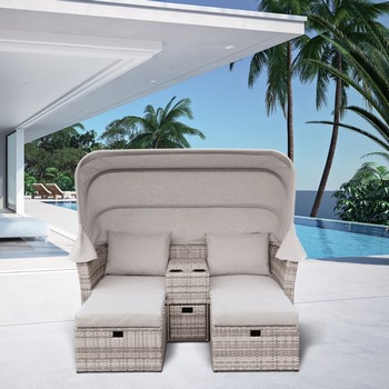 Цветовое исполнение (ротанг/подушки/тент): серый/серые/серый.