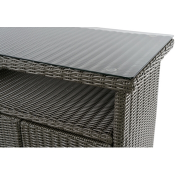 Материалы изделия: алюминиевый каркас, искусственный ротанг, закалённое стекло.