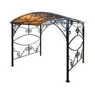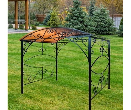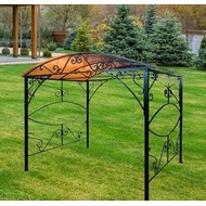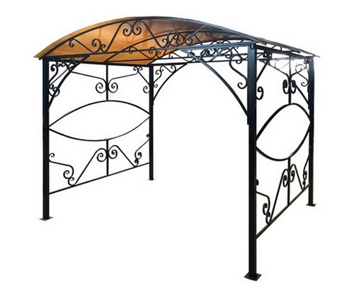 Беседка декорирована коваными элементами.