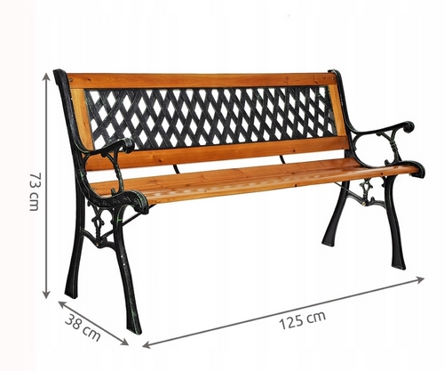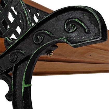 Сочетание прочного чугуна и натуральной древесины придает скамье благородный и эстетичный вид, а ажурное чугунное литье, искусственно состаренное техникой патина, добавляет ей особого шарма.