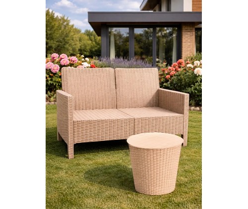 Диван двухместный садовый под ротанг СадКо (бежевый)