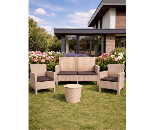 Диван двухместный садовый под ротанг СадКо (бежевый с коричневой подушкой)