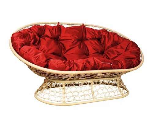 Цветовое исполнение: каркас, плетение - бежевое, подушка - красная.