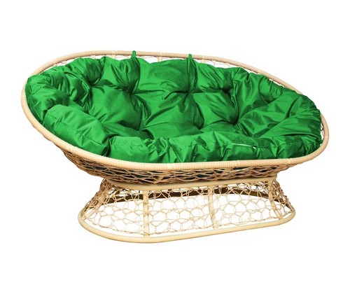Цветовое исполнение: каркас, плетение - бежевое, подушка - зеленая.