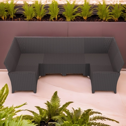 Дизайн пластика под ротанг придает мебели естественный вид и гармонично сочетается с любым ландшафтом.