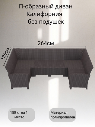 Диван П-образный Калифорния (California) 136х264х136 см на 6 мест без подушек.