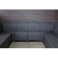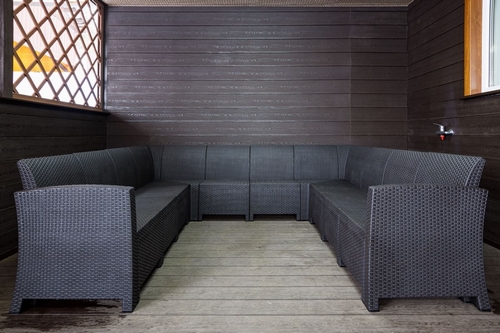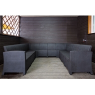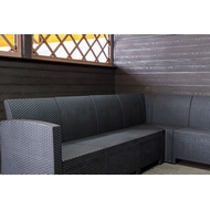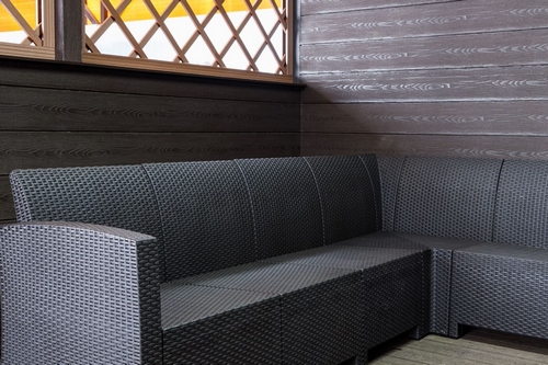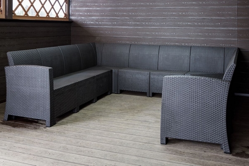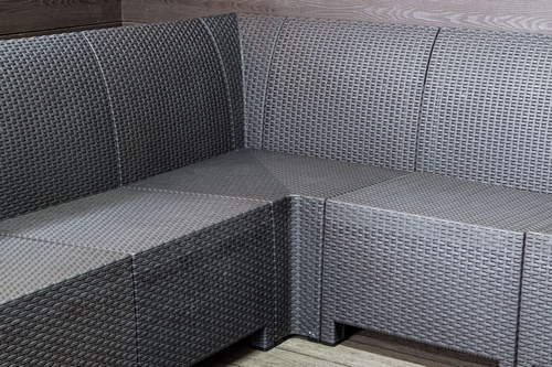 Дизайн пластика под ротанг придает мебели естественный вид и гармонично сочетается с любым ландшафтом.