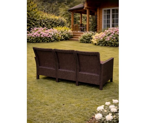 Диван трехместный садовый под ротанг СадКо (темно-коричневый)