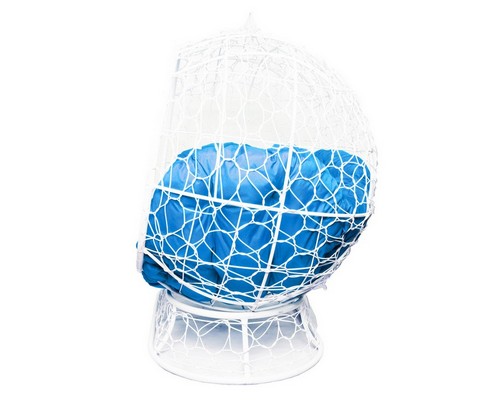 Диван УЛЕЙ на ножках с ротангом (белый с голубой подушкой)