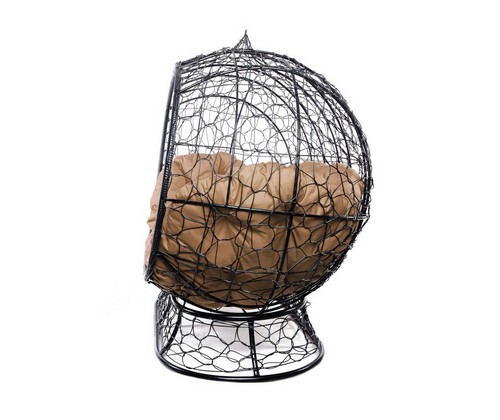 Диван УЛЕЙ на ножках с ротангом (черный с бежевой подушкой)