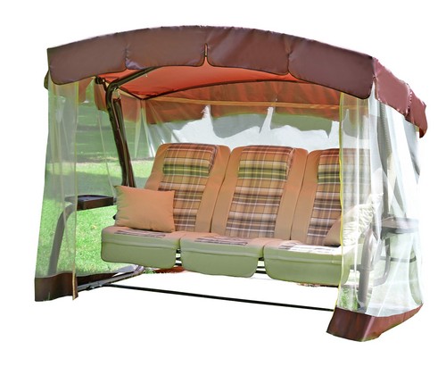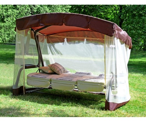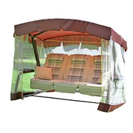 Качели садовые 3-х местные Палермо Премиум мебельная ткань коричневый / бежевый