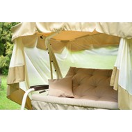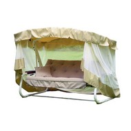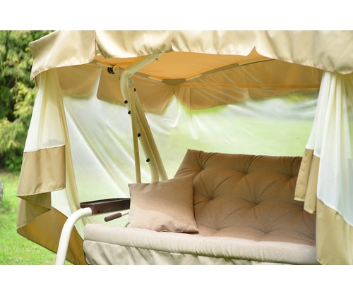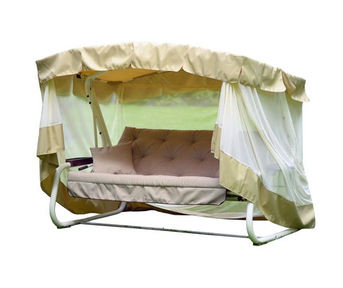 Качели садовые 4-х местные Саванна комплектуются подголовником, подстаканниками и москитной сеткой.