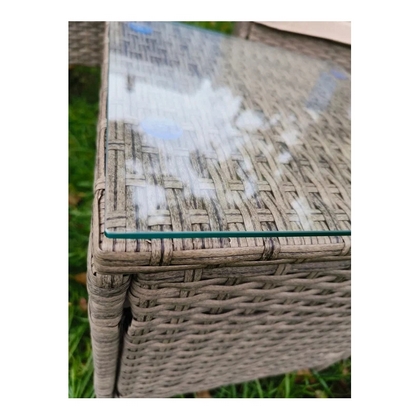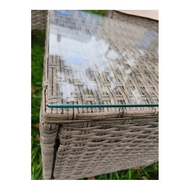 Материал: каркас - сталь, плетение - искусственный ротанг, столешница - стекло