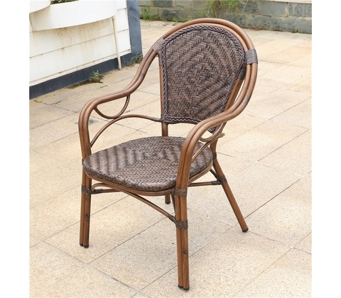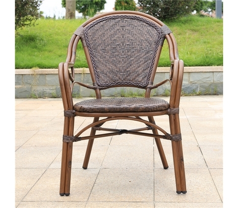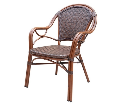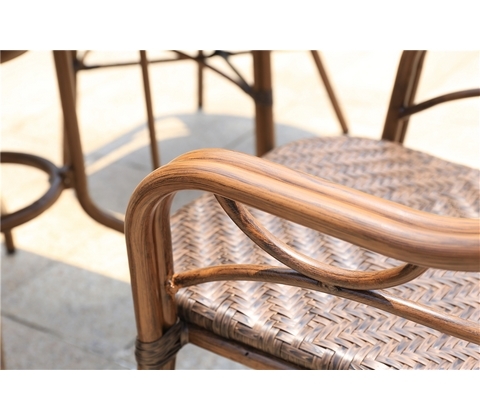 Алюминиевый комплект из искусственного ротанга состоит из стола и 2-х кресел.
