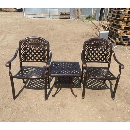Кофейный набор из литого алюминия столик Вилла и 2 кресла Вулкан (бронза)