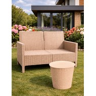 Комплект 2 садовых кресла, двухместный диван и столик под ротанг СадКо (бежевый)