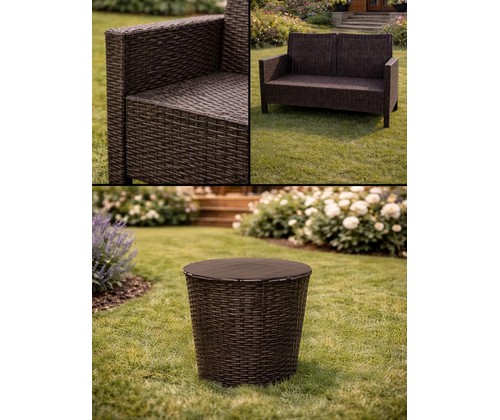 Комплект 2 садовых кресла, двухместный диван и столик под ротанг СадКо подарит вам комфортный отдых на свежем воздухе, объединяя стильный дизайн, практичность и надежность.