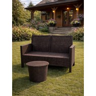 Комплект 2 садовых кресла, двухместный диван и столик под ротанг СадКо (темно-коричневый)