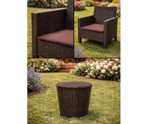 Комплект 2 садовых кресла и столик под ротанг СадКо подарит вам комфортный отдых на свежем воздухе, объединяя стильный дизайн, практичность и надежность.