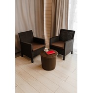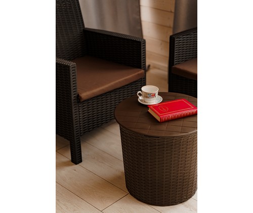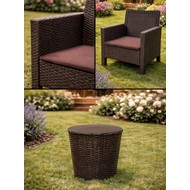 Комплект 2 садовых кресла и столик под ротанг СадКо (темно-коричневый с коричневой подушкой)