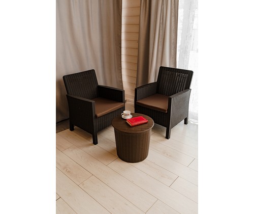 Комплект 2 садовых кресла и столик под ротанг СадКо (темно-коричневый с коричневой подушкой).