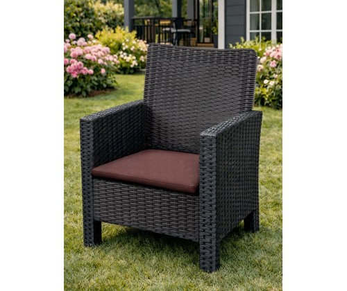 Комплект 2 садовых кресла и столик под ротанг СадКо (темно-серый с коричневой подушкой).