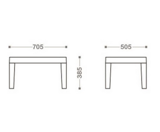 Столик: длина - 70,5 см, ширина - 50,5 см, высота - 38,5 см.