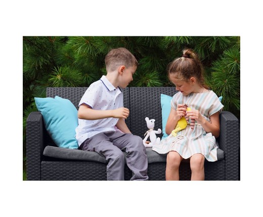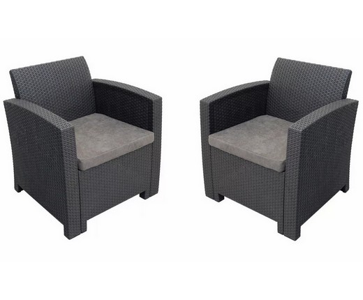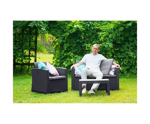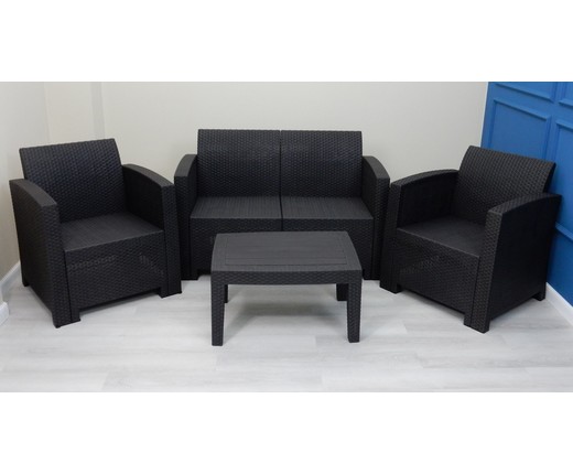 Комплект Arizona двухместный диван, 2 кресла и столик (антрацит, подушки серые)
