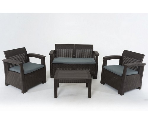 Комплект мебели из искусственного ротанга с двумя креслами, столом и 2-х местной софой.