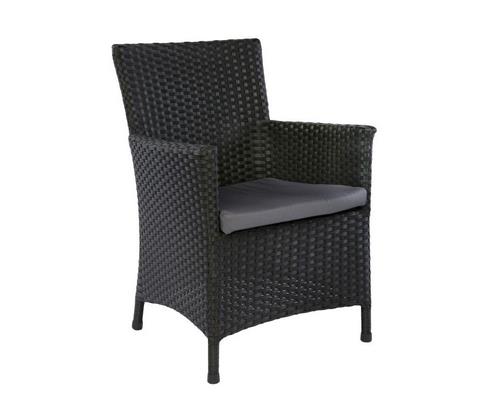 Цветовое исполнение: черный каркас оплетен черным искусственным ротангом, подушки - серые.