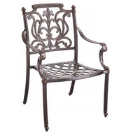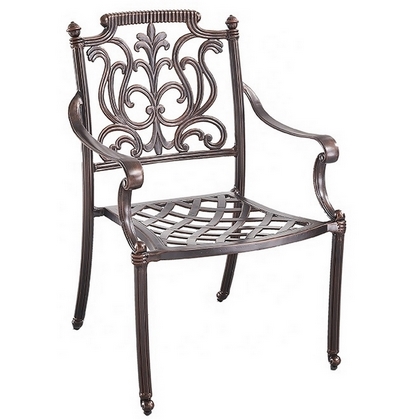 Обеденный комплект из литого алюминия состоит из стола и четырех кресел с подлокотниками.