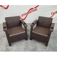 В комплект входит: кресло - 2 шт, подушки на сидение и на спинку (бежевый/коричневый).