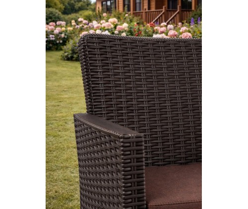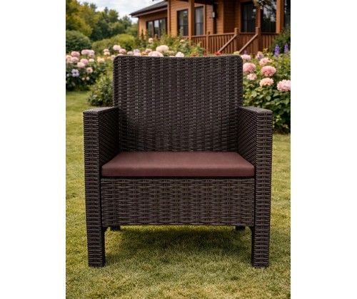 Комплект кресел садовых под ротанг 2 шт СадКо (темно-коричневый с коричневой подушкой).