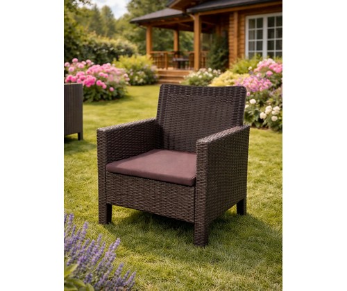 Комплект кресел садовых под ротанг 2 шт СадКо (темно-коричневый с коричневой подушкой)