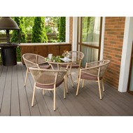 Комплект мебели 4 стула Латте и круглый стол Ялта создаст гармоничное и комфортное пространство для отдыха с семьей и друзьями, объединяя природную эстетику и современные технологии.