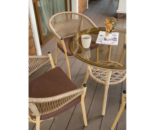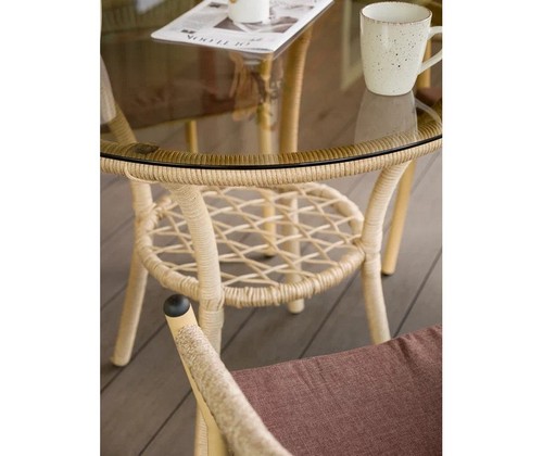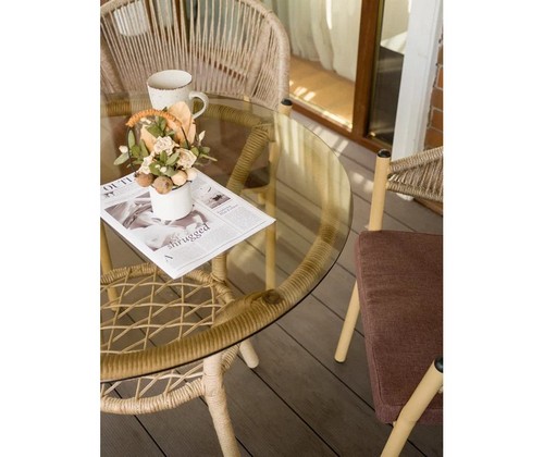Благородный оттенок искусственного ротанга придает комплекту природную теплоту и визуальную легкость.