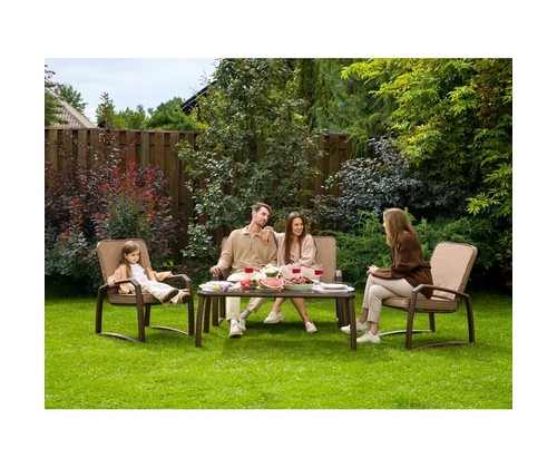 Благородный оттенок искусственного ротанга придает комплекту природную теплоту и визуальную легкость.