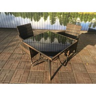 Комплект состоит из квадратного стола и 2 кресел с подушками.