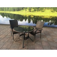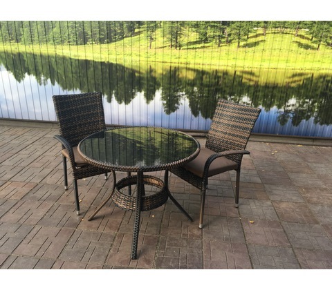 Комплект состоит из круглого стола и 2 кресел с подушками.