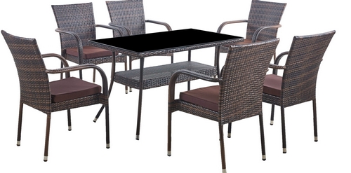 Особенности: Комплект мебели на шесть персон станет отличным решением для организации семейных посиделок или с друзьями. В комплекте есть подушки. Прочный и долговечный. Подойдёт для использования как в доме, так и на улице. Погодостойкий. Прост в очистке и долго сохраняет свой первоначальный вид. Вес кресла - 5,5 кг, вес стола - 20 кг.