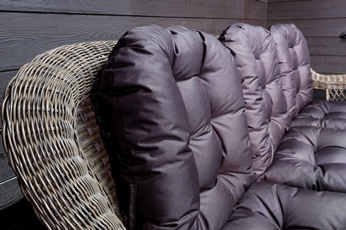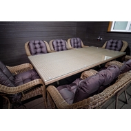 Материалы: Каркас - сталь, плетение - искусственный ротанг, столешница - закалённое стекло, подушки - полиэфирная ткань.