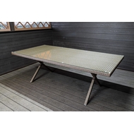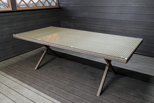 Материалы: Каркас - сталь, плетение - искусственный ротанг, столешница - закалённое стекло.