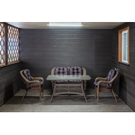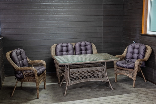 Особенности: Обеденный комплект из искусственного ротанга Мэдисон Lunch set отлично впишется в любой интерьер. Можно удобно разместиться с друзьями или всей семьёй. Отлично подойдёт для комфортного отдыха на свежем воздухе. Несмотря на кажущуюся хрупкой конструкцию, выдерживает довольно большой вес. Не требует особого ухода. Состоит из дивана, двух кресел с подушками на сиденье и спинку, стола. Стекло на присосках. Вес дивана - 12 кг, кресла - 7,6 кг, стола - 20 кг.