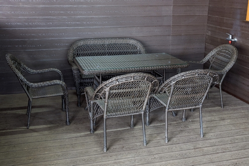 Особенности: Обеденная группа Madison New представляет собой элегантный комплект мебели для обеденной зоны. В набор входит прямоугольный стол, диван и четыре кресла без подушек. Удобное место для приема пищи или проведения различных мероприятий с семьёй и друзьями. Прекрасно впишется в любой интерьер дачного дома, участка и т.д. Вес кресла: 5,8 кг, вес дивана: 8,7 кг, вес стола: 26 кг.