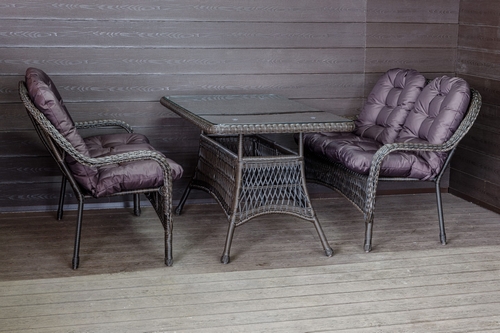 Особенности: Комплект из искусственного ротанга Мэдисон Нью Company set отлично впишется в любой интерьер. Можно удобно разместиться с друзьями или всей семьёй. Отлично подойдёт для комфортного отдыха на свежем воздухе. Несмотря на кажущуюся хрупкой конструкцию, выдерживает довольно большой вес. Не требует особого ухода. Состоит из стола и двух диванов. Подушки в комплекте. Вес дивана - 8,7 кг.