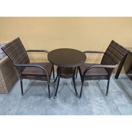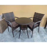 Комплект мебели из искусственного ротанга состоит из круглого стола и 2 кресел.