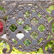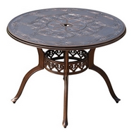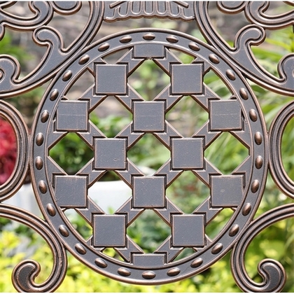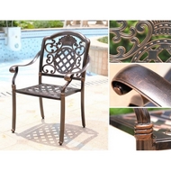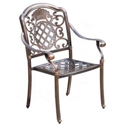 Обеденный комплект из литого алюминия состоит из стола и шести кресел с подлокотниками.