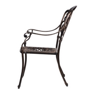 Комплект мебели из литого алюминия состоит из круглого стола и восьми кресел с подлокотниками.
