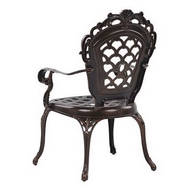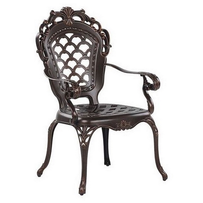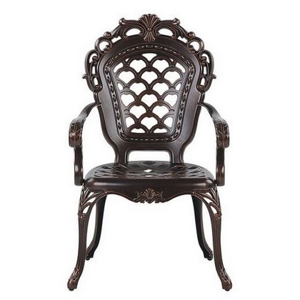 Комплект мебели из литого алюминия состоит из круглого стола и восьми кресел с подлокотниками.