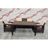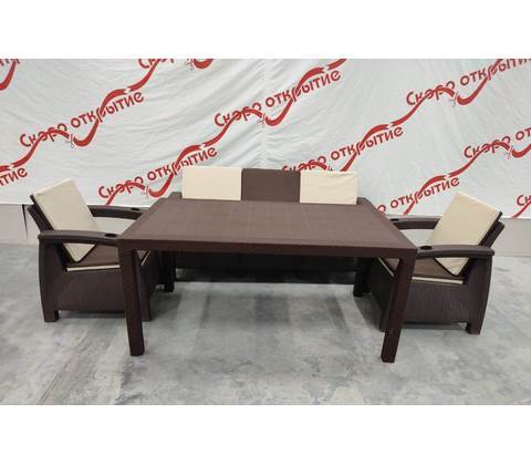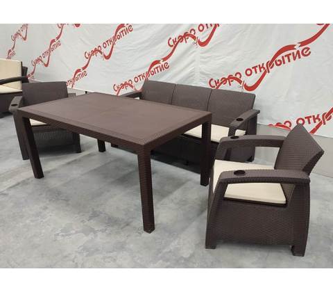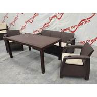 В комплект входит: диван трёхместный, кресло - 2 шт, стол, подушки на сиденья, подушки на спинку.